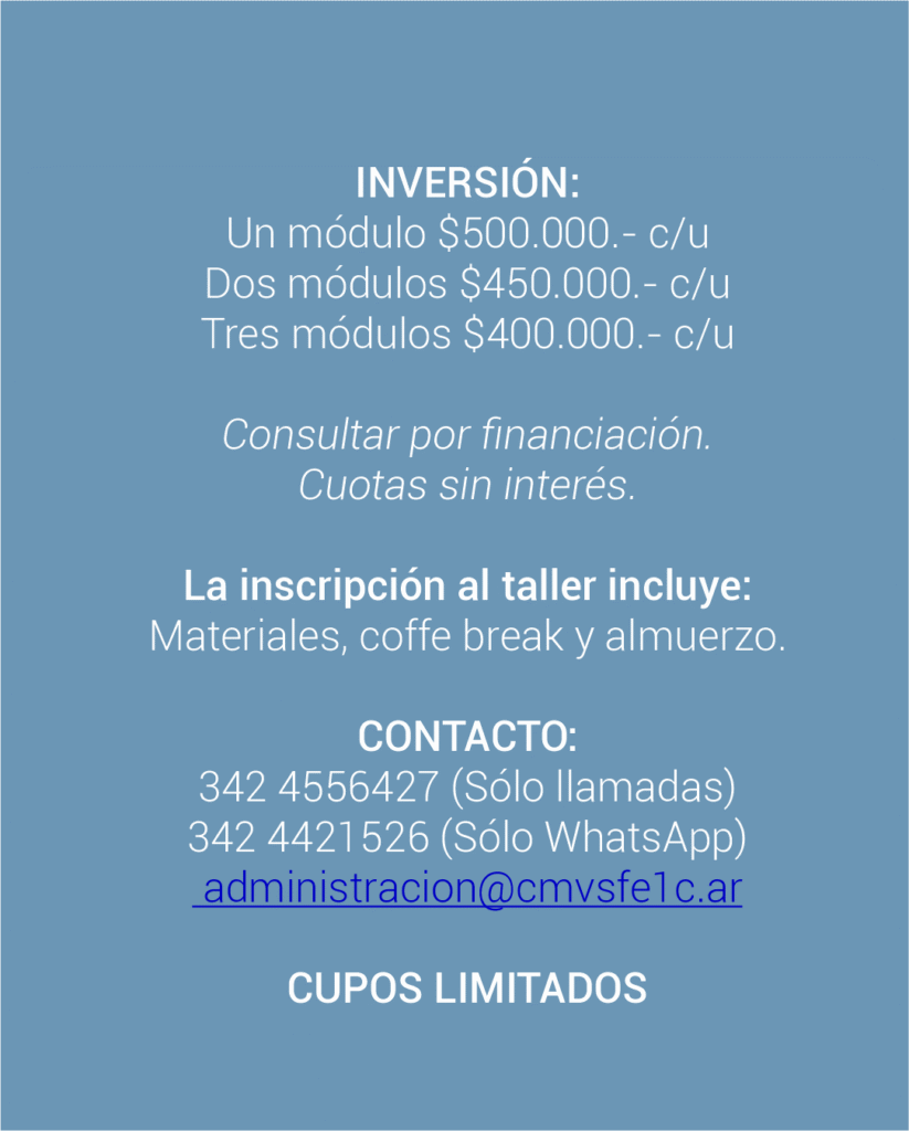 El taller se dictará en dos etapas: